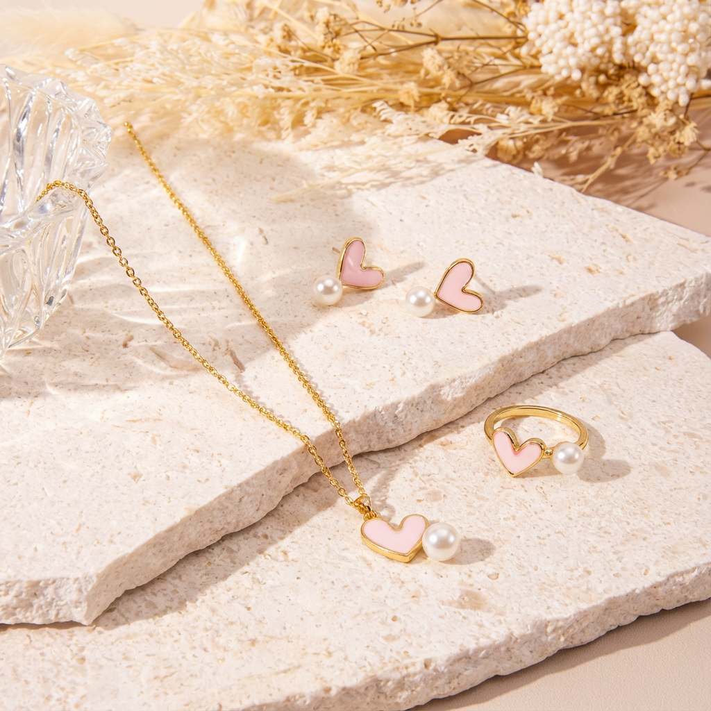Romantic Pink Heart with Pearl Ring